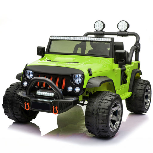 Jeep Wrangler 12V Version 2 Seater Classic 24V Version: 24V Version Jeep Wrangler 2 Seater Durable & Safe Design This 2-seater electric ride...