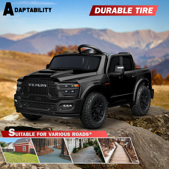 This Dodge RAM 2500 ride-on offers a lifelike driving experience with premium details, smooth acceleration, and a Bluetooth-enabled sound system.