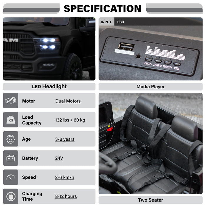 24V Dodge RAM 2500 Ride-On Truck for Kids